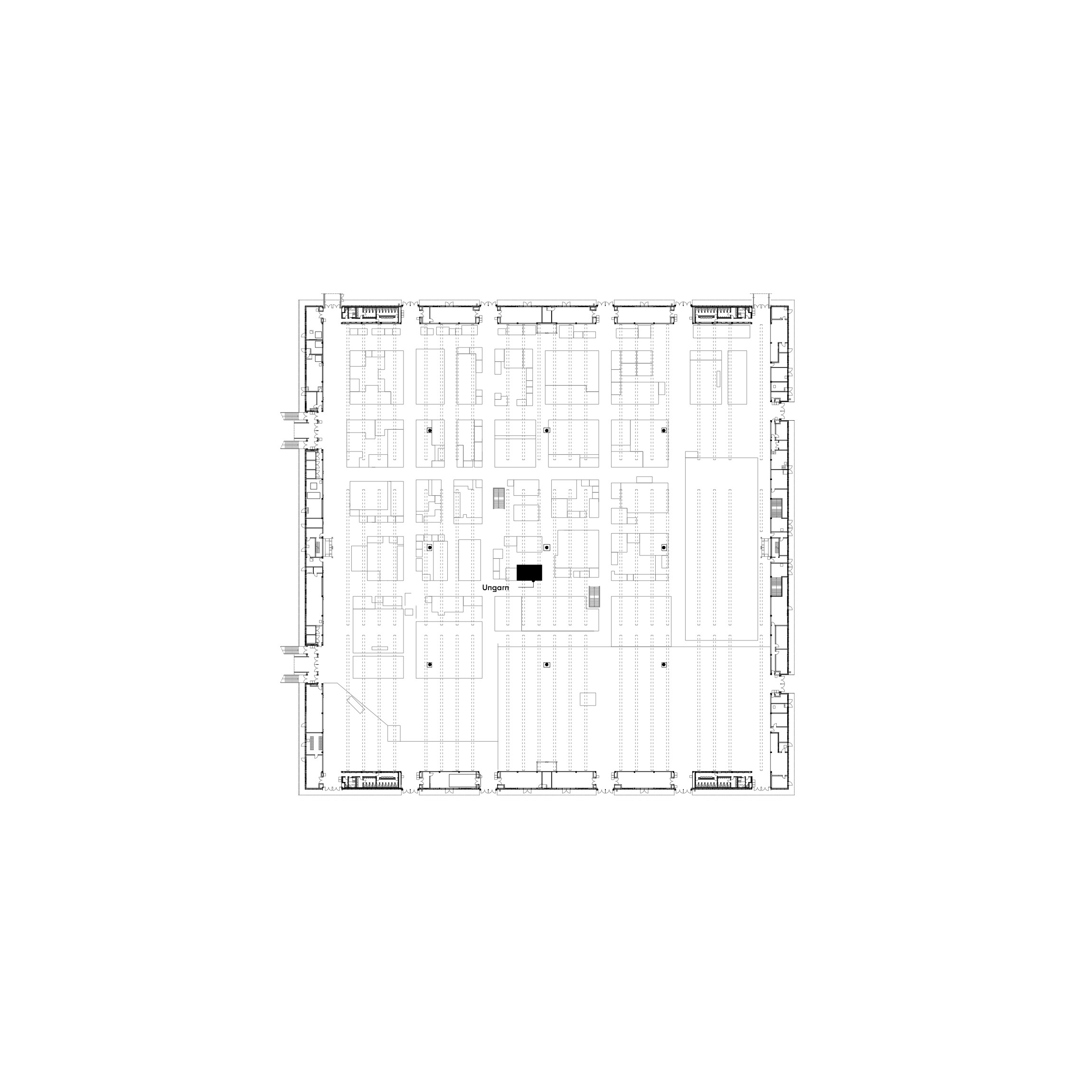 The conceptual basis for this year’s Hungarian pavilion of the Leipzig Book Fair was defined by the approaching centenary of the Bauhaus. We wanted to conjure up the 99th anniversary in the pavilion not so much by direct formal references, but rather in a more indirect manner while retaining the primary focus for visitors and the books on display. We applied the characteristically Bauhaus approach of the Gesamtkunstwerk, and defined a reading space with a unique character and strong atmosphere, in the overwhelmingly standardised and commercial context of the fair. In essence, we recommended the opposite of what is characteristic of usual trade fair situations. Apart from obvious connections to contemporary architecture, the inner spatial atmosphere was also inspired by examples directly connected to the Bauhaus, displaying the use of uncluttered, fluid spaces defined by textiles: a great example being Café Samt und Seide designed by Ludwig Mies van der Rohe and Lilly Reich, and built in 1927 in Berlin, serving as an exhibition pavilion for the German silk industry. The uniqueness, lightness, constant movement, transparency and flexibility of the material used in this plan by Mies, who later served as director of the Bauhaus from 1930-1933, strengthens his paradigm-shifting theory of fluid spaces, which we tried to invoke in the exhibition space in Leipzig. The presence and mutual interference of several art forms was as much a characteristic of the Bauhaus, as its elevating and intensive connection and interaction with the Hungarian art scene. The latter is emphasised by the quote from Walter Gropius, the motto of our design. In a heartfelt letter from 1925, the Bauhaus-founder urges one of the defining figures of the Hungarian Bauhaus to return to Dessau and participate in the art life of the school. The closing sentece of this letter, used as our motto and displayed on a curtain inside the space of the pavilion, symbolises the strong, symbiotic relationship between the international mainstream of the Bauhaus and its Hungarian adherents.