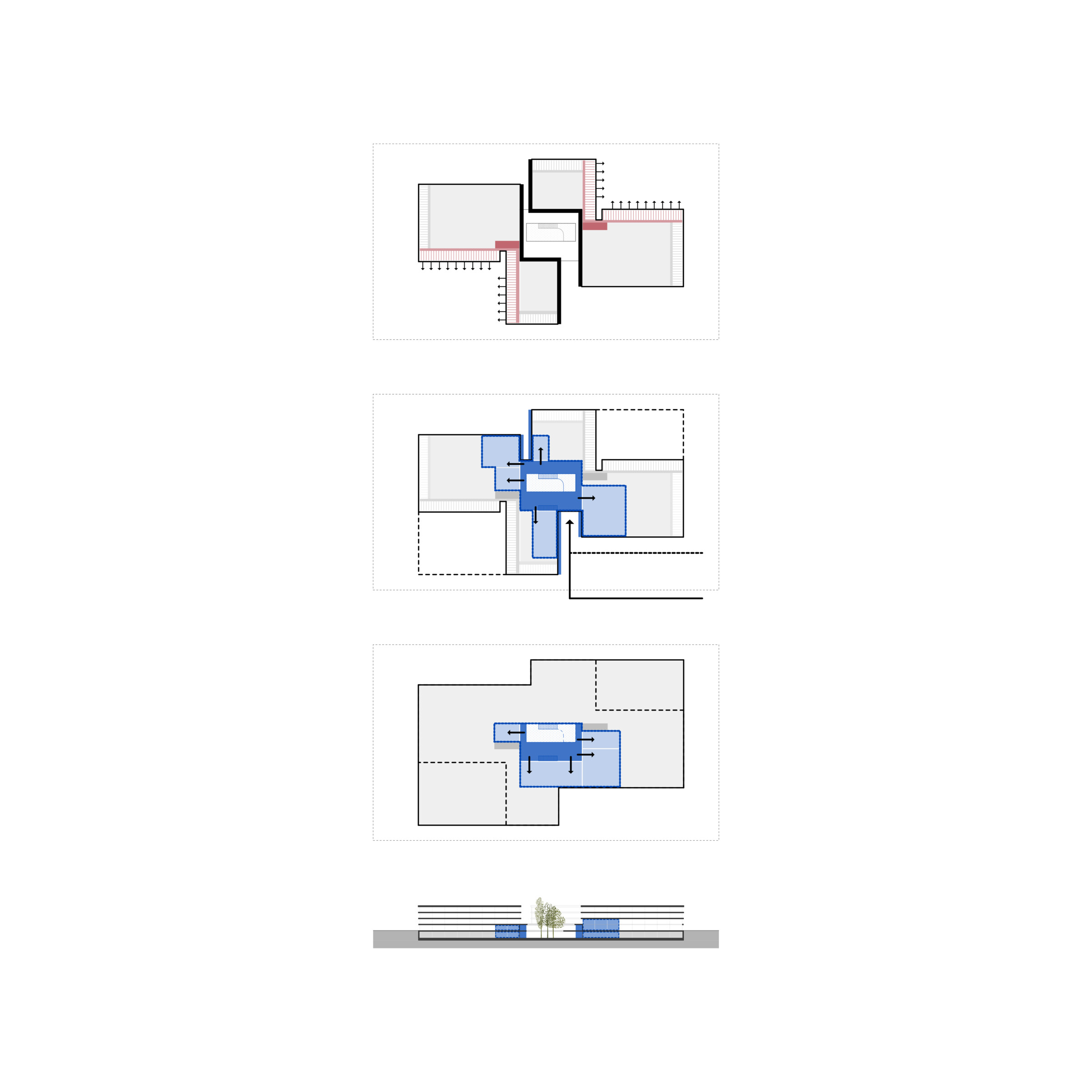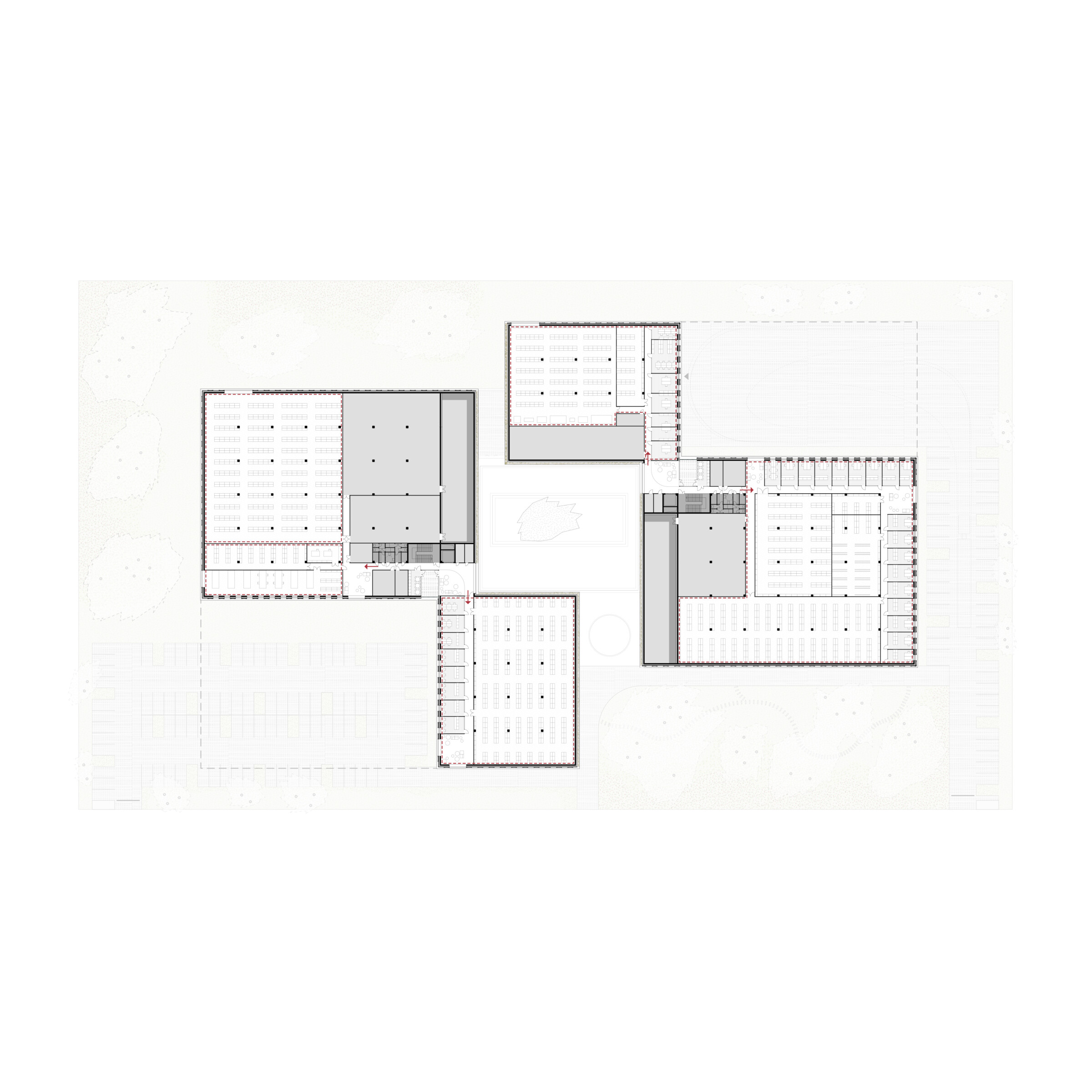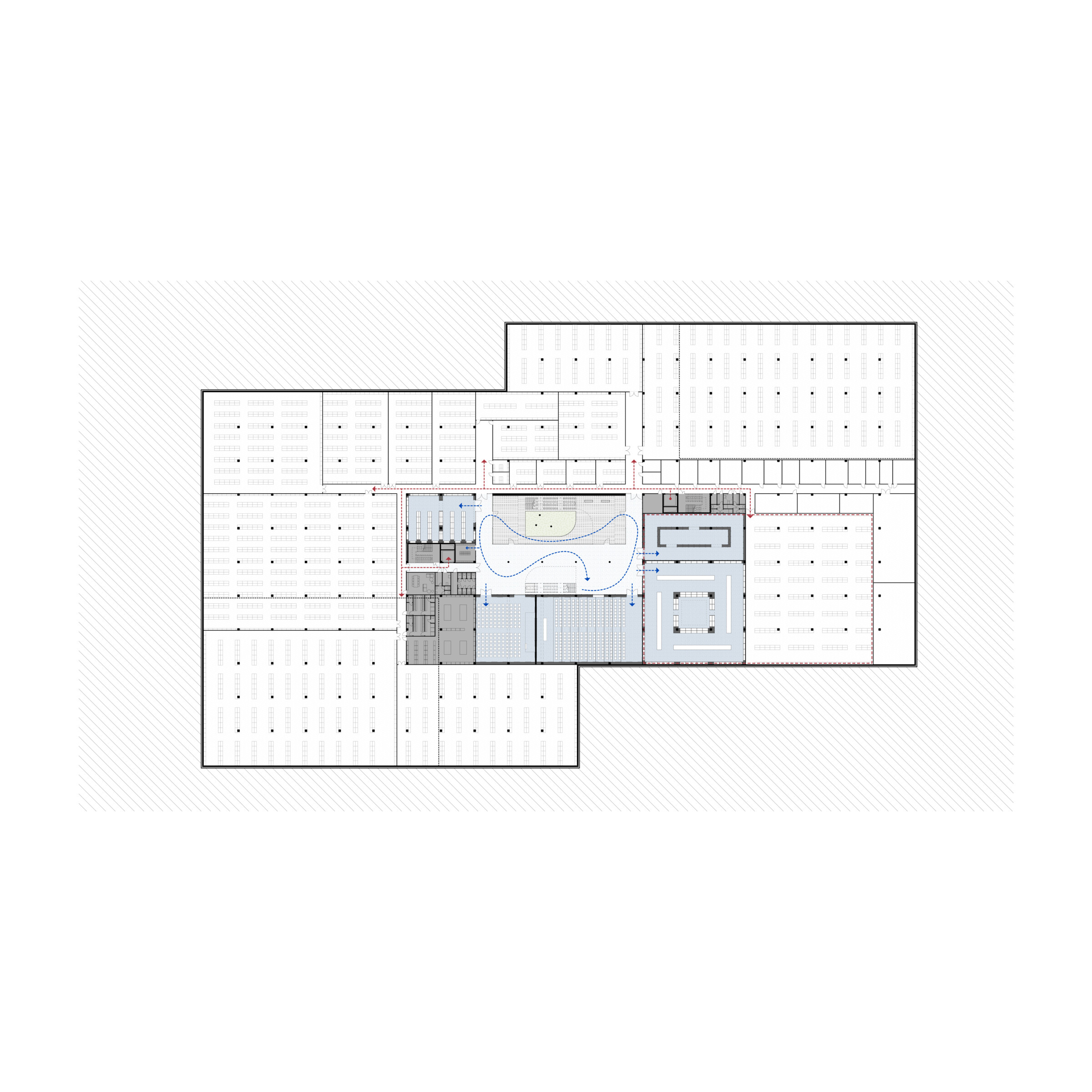 - Tiszta funkcionális rendszer: a közönségforgalmi, illetve raktározási és kutatási területeket egyértelmű szétválasztottuk. A különböző raktárak és kisebb egységek szervezése jól lehatárolható önálló blokkokba kerültek, igazodva e tércsoportok különféle igényeihez (belmagasság, térkapcsolat, természetes megvilágítás, stb.).