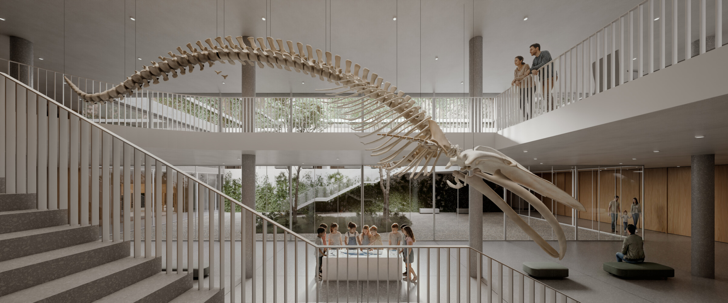 - Kompakt kialakítás és mértéktartó racionalitás: az épület kialakításánál a gazdaságos, racionális térszervezésre törekedtünk, amely elsősorban egy professzionális kutatási központhoz illeszkedően technológia-vezérelt, és csak a legfontosabb, szélesebb közönség által is látogatott helyeken válik nagyvonalúvá, egyedivé. A kutatóbázis és a tudásközpont összemetsződéseiként értelmezhető látványtárak és egyéb közönségforgalmi terek koncentrálása két szinten, az épület szívében történik.