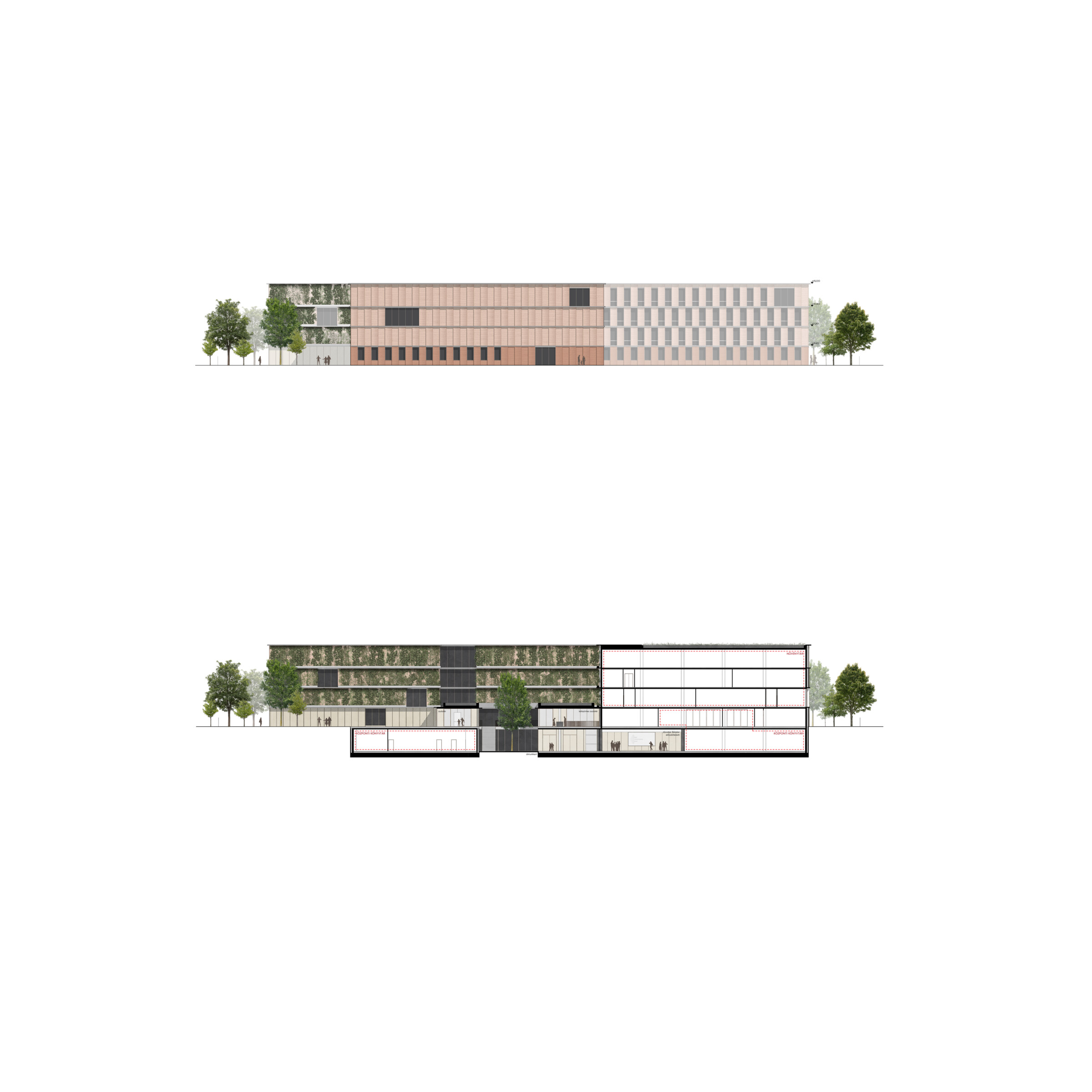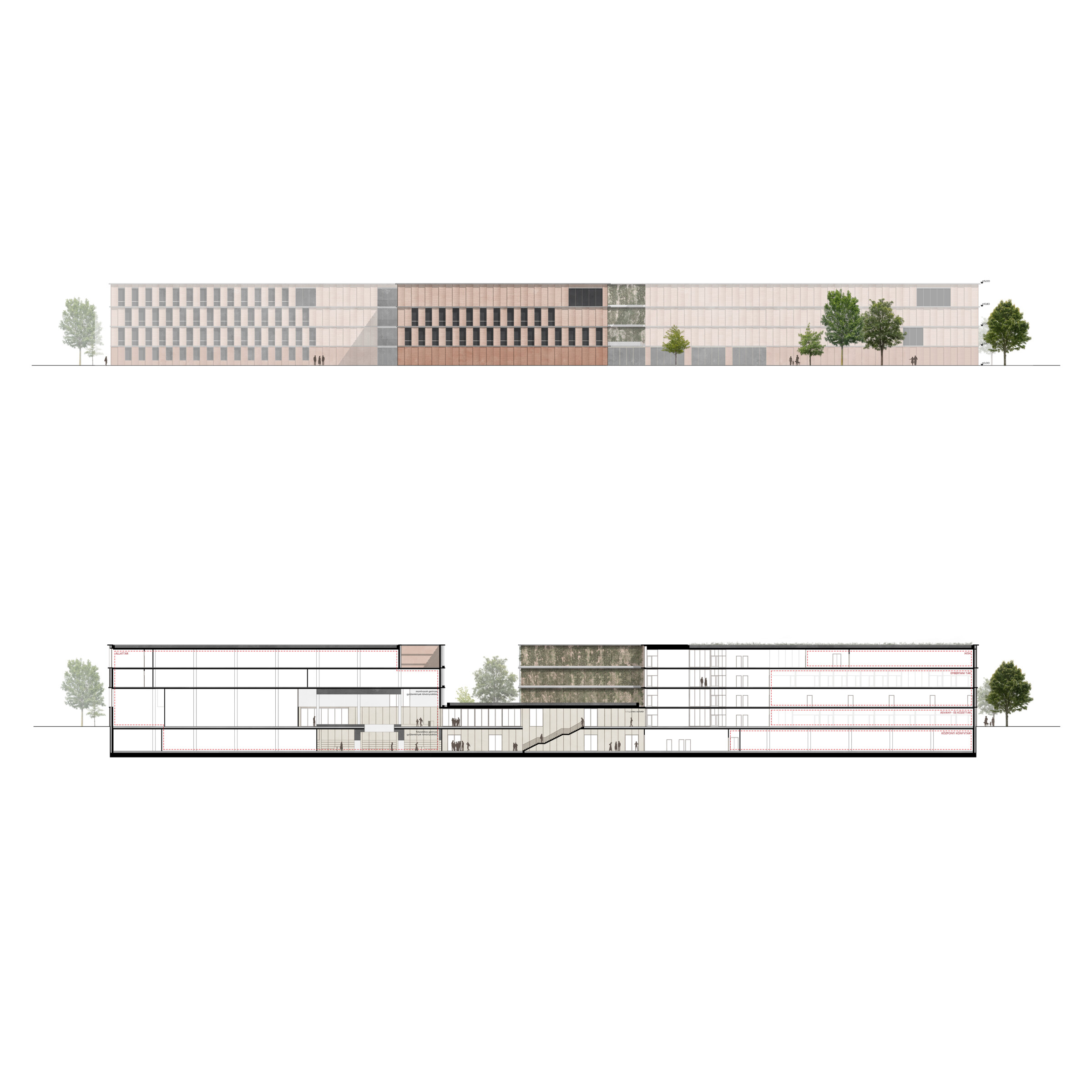 Ennek megfelelő építészeti elgondolásunk alapja: az épület egyszerre kíván szigorúan szerkesztett, racionális munkahely, valamint a raktártechnológiát professzionális módon kiszolgáló terek sorozata lenni egyfelől, és egyszerre célja, hogy látványos, izgalmas és élményszerűen bejárható tereket hozzon létre a látogatók számára. Meggyőződésünk, hogy e kettősség teheti különlegessé, akár regionális jelentőségűvé ezt az intézményt, ezért pályázat legnagyobb kihívása ennek a kettős használatnak való megfelelés és a két használat megfelelő arányának kialakítása.