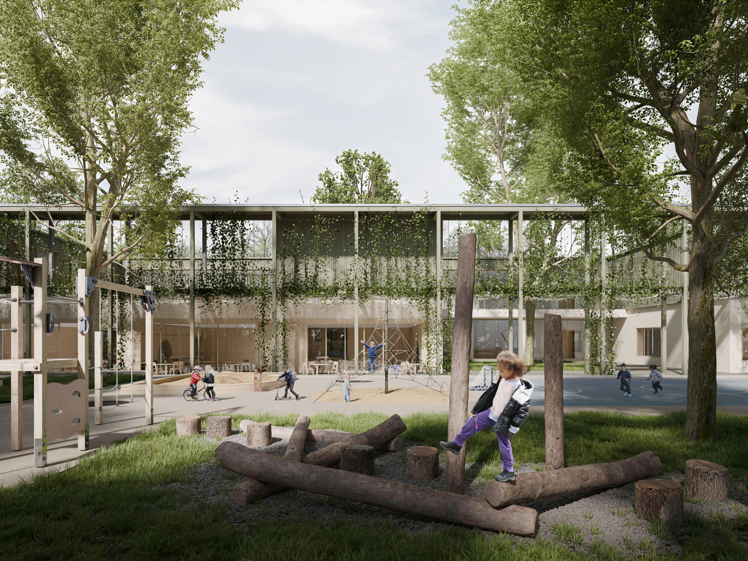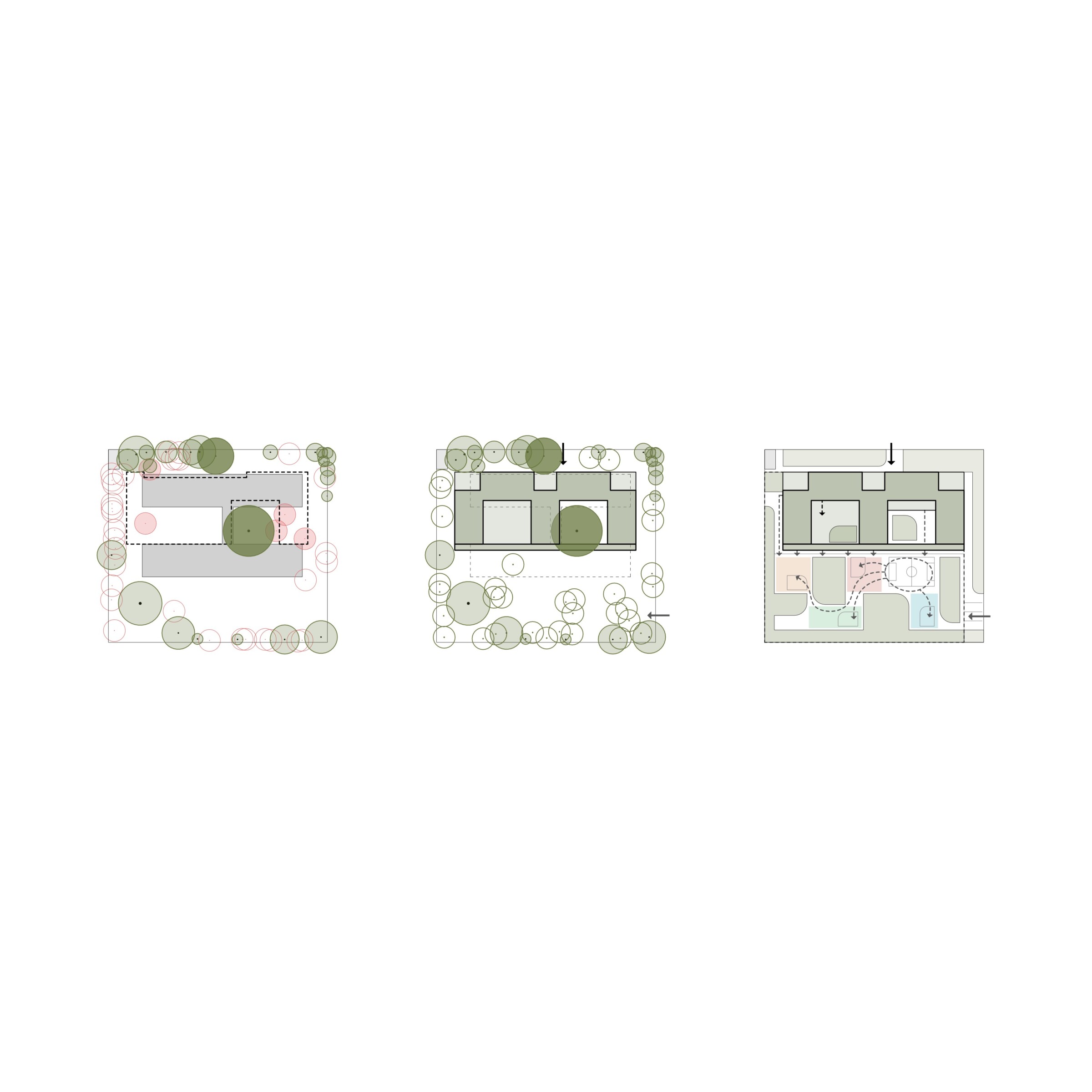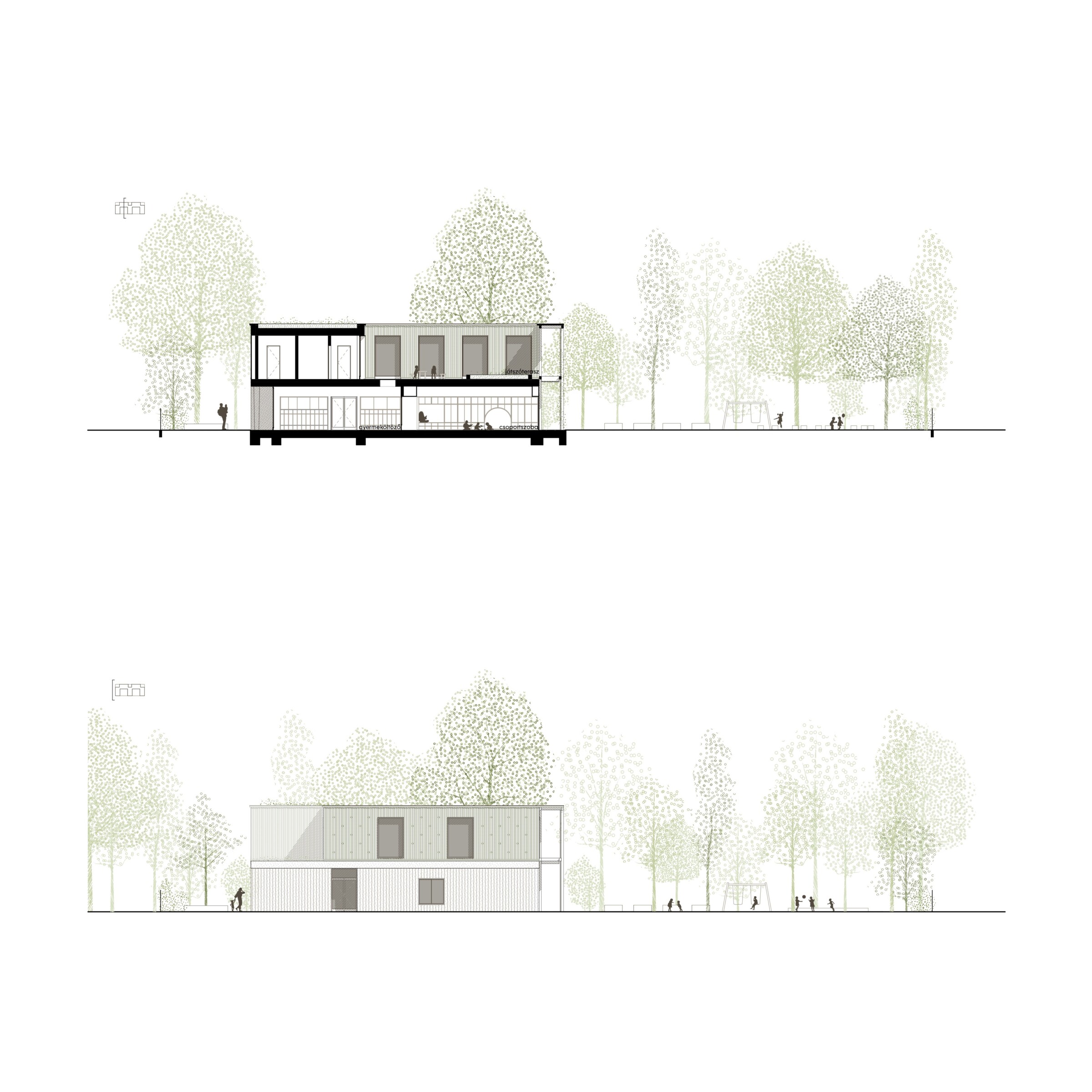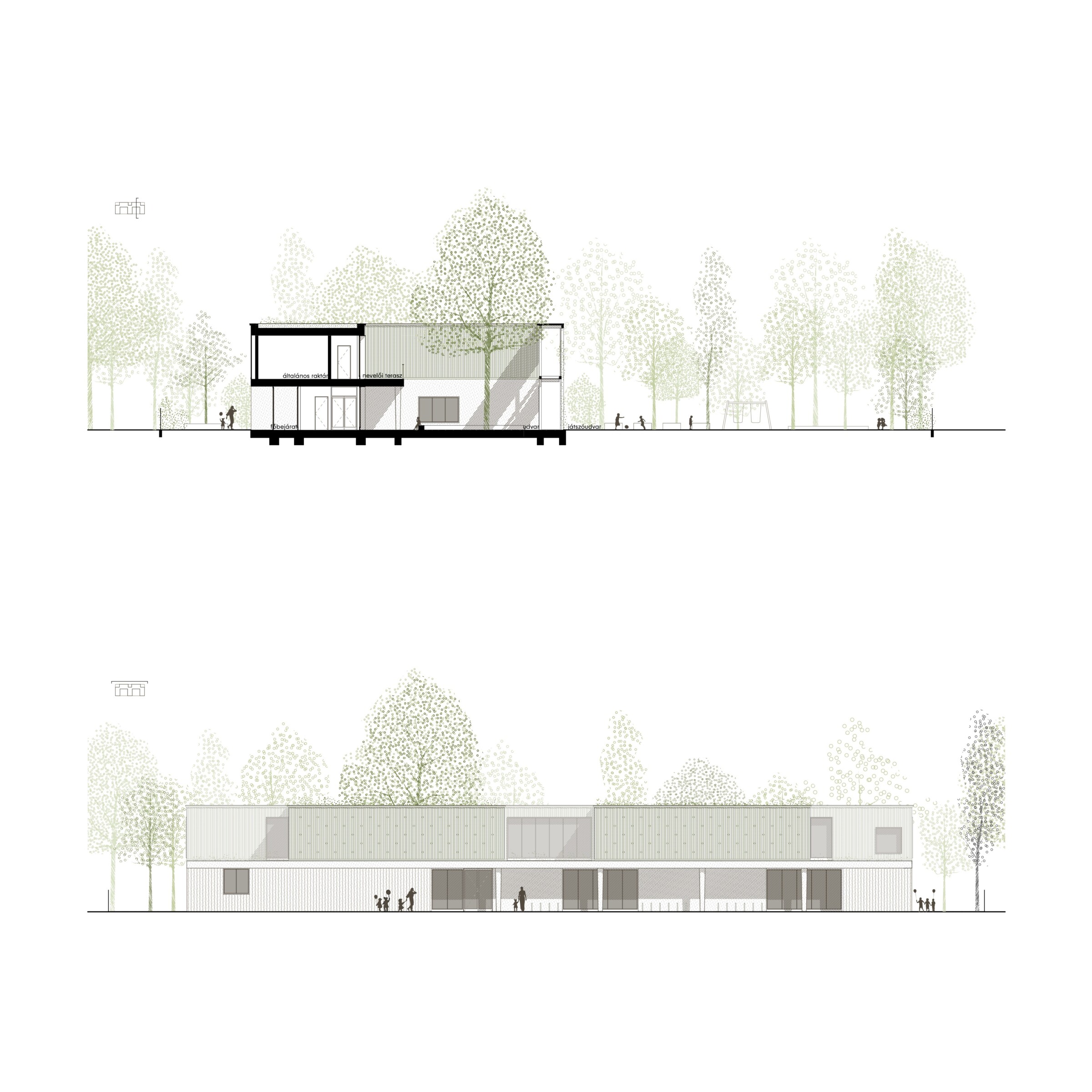 - a legkisebb “LÁBNYOM” elve: új épület építése a bontandó épület helyén, kompakt, gazdaságosan megépíthető kialakítás, a legkisebb “lábnyom”, a zöldfelület és a játszóudvar területének maximalizálása